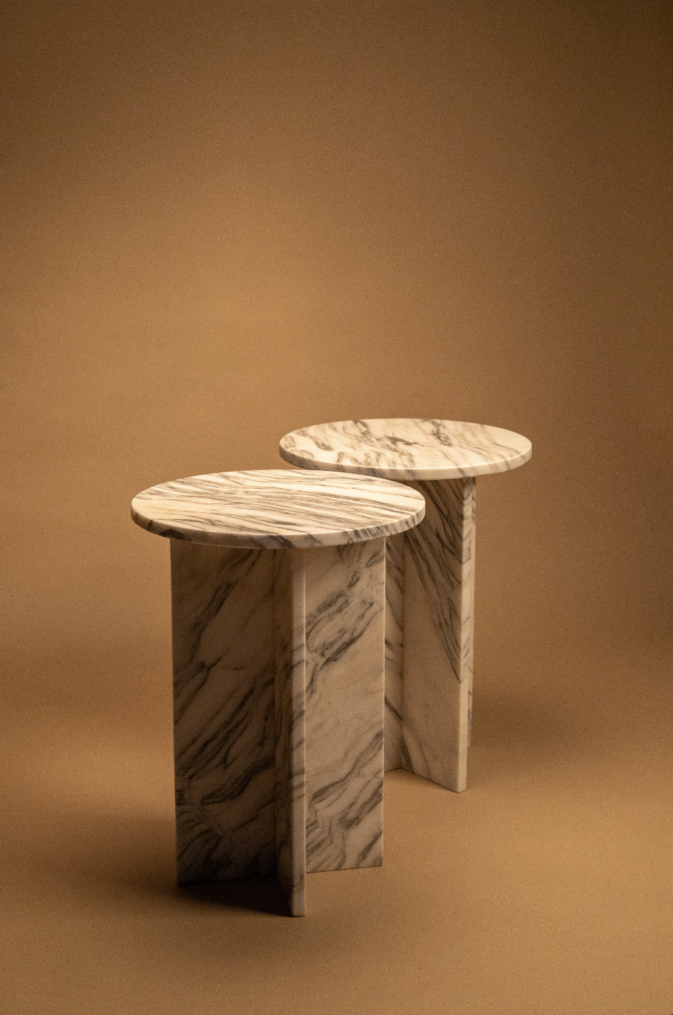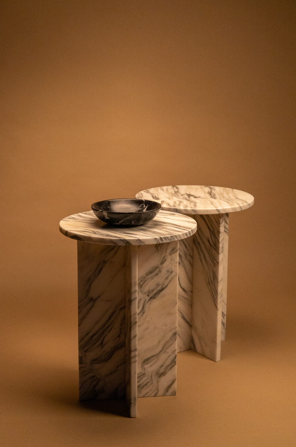 Mesa Sienna elaborada con Mármol Striatto Tucci. Una pieza.