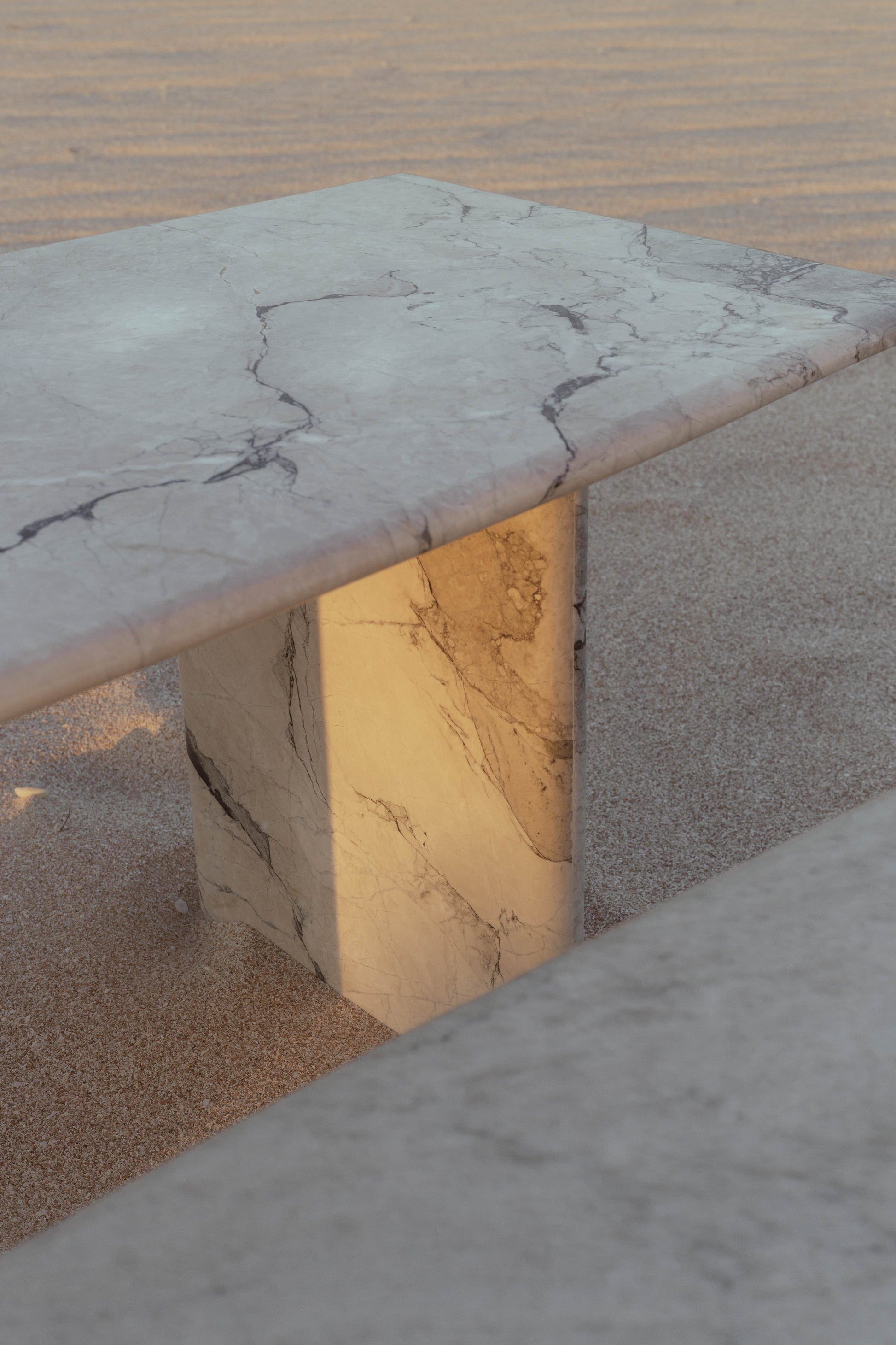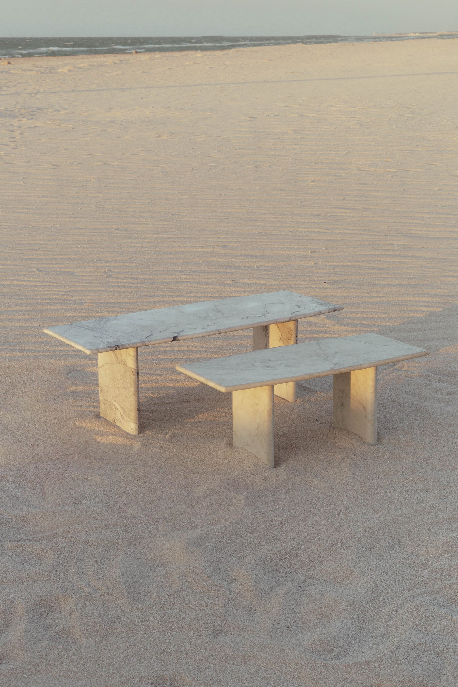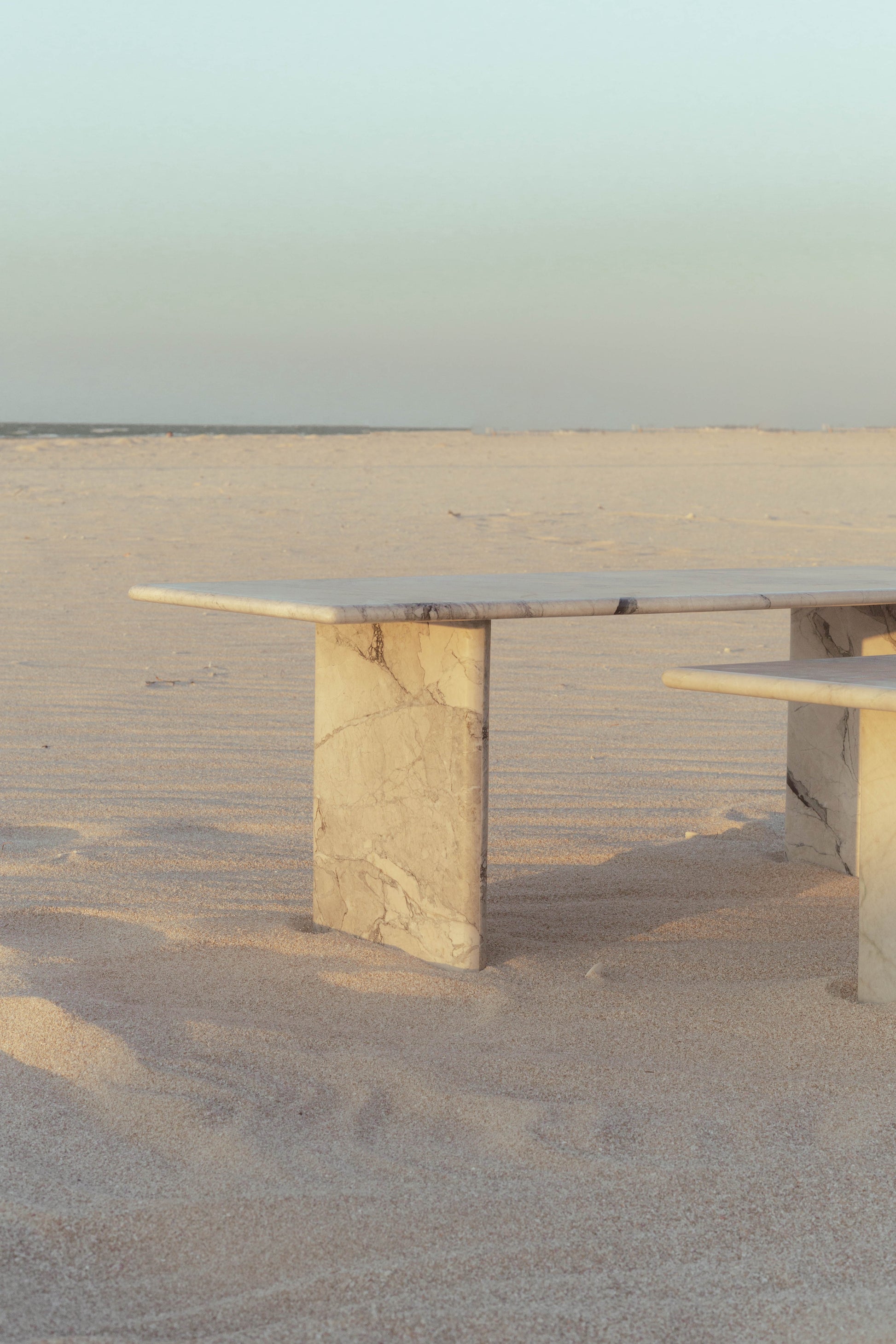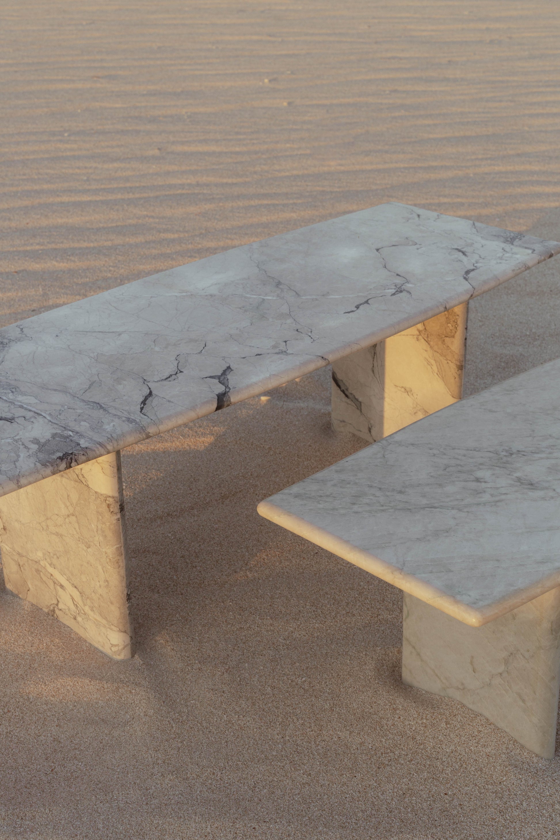 El set incluye dos mesas, ambas en Mármol White Camouflage y granito Renaissance.