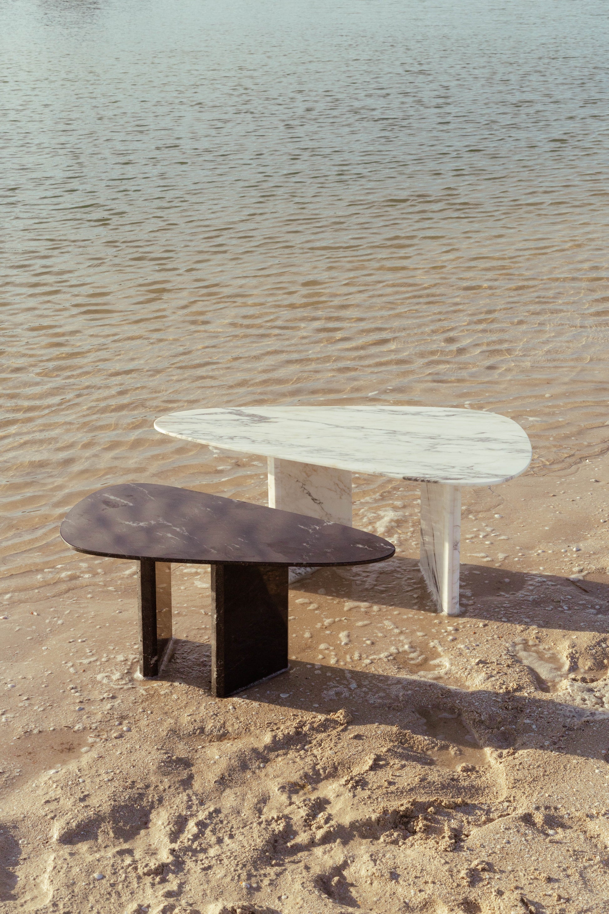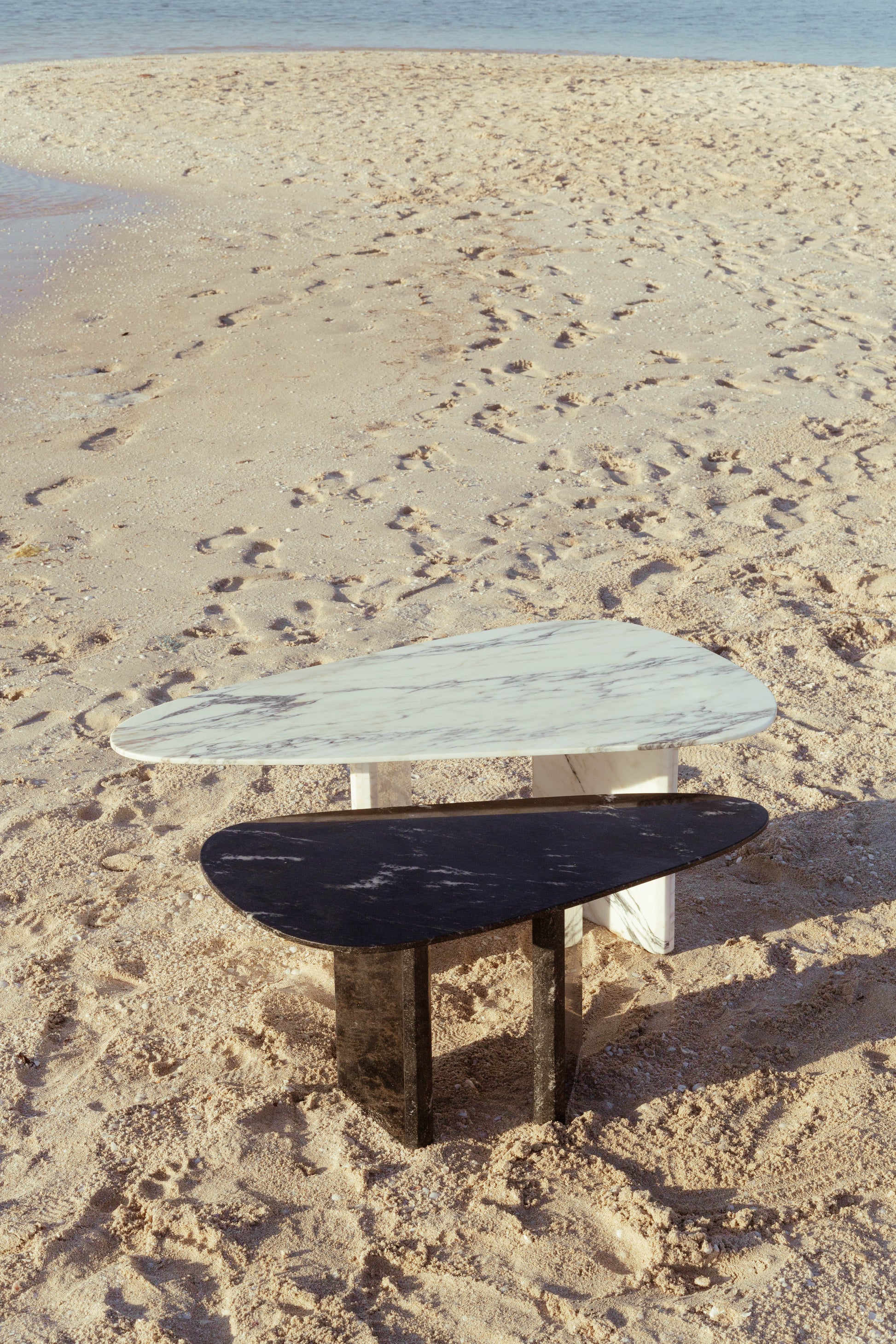 El set incluye dos mesas, ambas en Mármol Arabescatto Corchia y granito Vía Láctea.